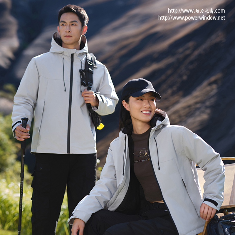 动力之窗山系抗污保暖休闲运动户外可拆卸羽绒冲锋衣男女外套上衣