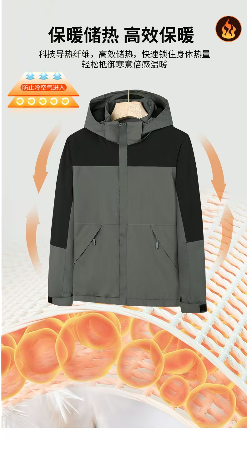 防风防水银狐绒保暖户外三合一可拆卸连帽冲锋衣男女运动外套上衣